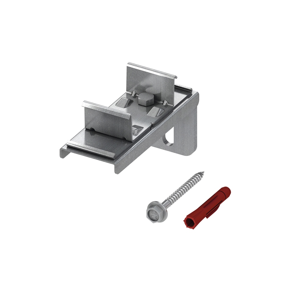 Крепление поставляется в собранном виде с необходимыми метизами. Регулируемая длина позволяет точно позиционировать и зафиксировать два профиля относительно несущей основы. Монтаж не требует специальных инструментов, что делает процесс простым и эффективным.